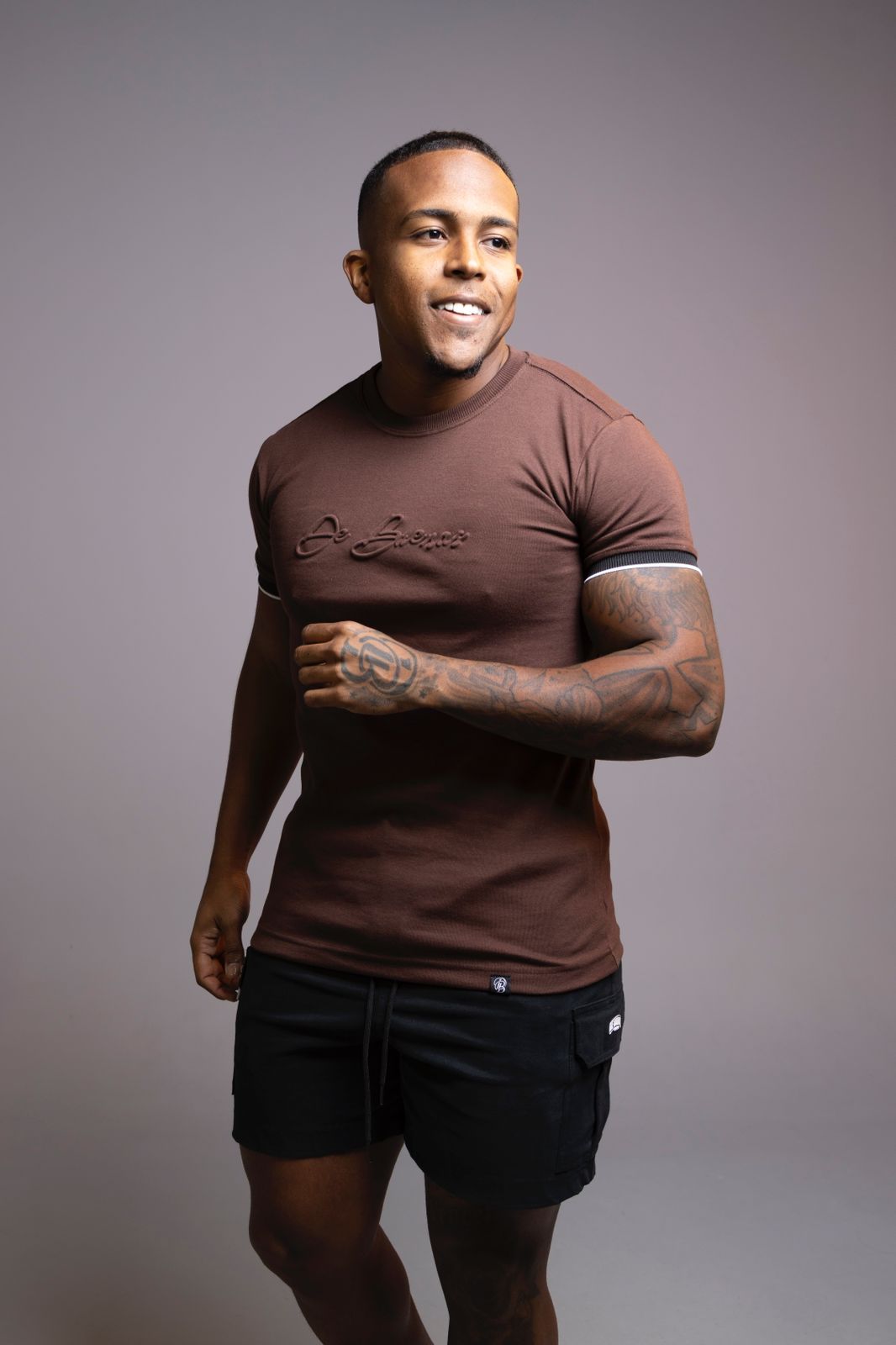 Camisa Marrom Algodão Suedine Punho Embossing De Buenas