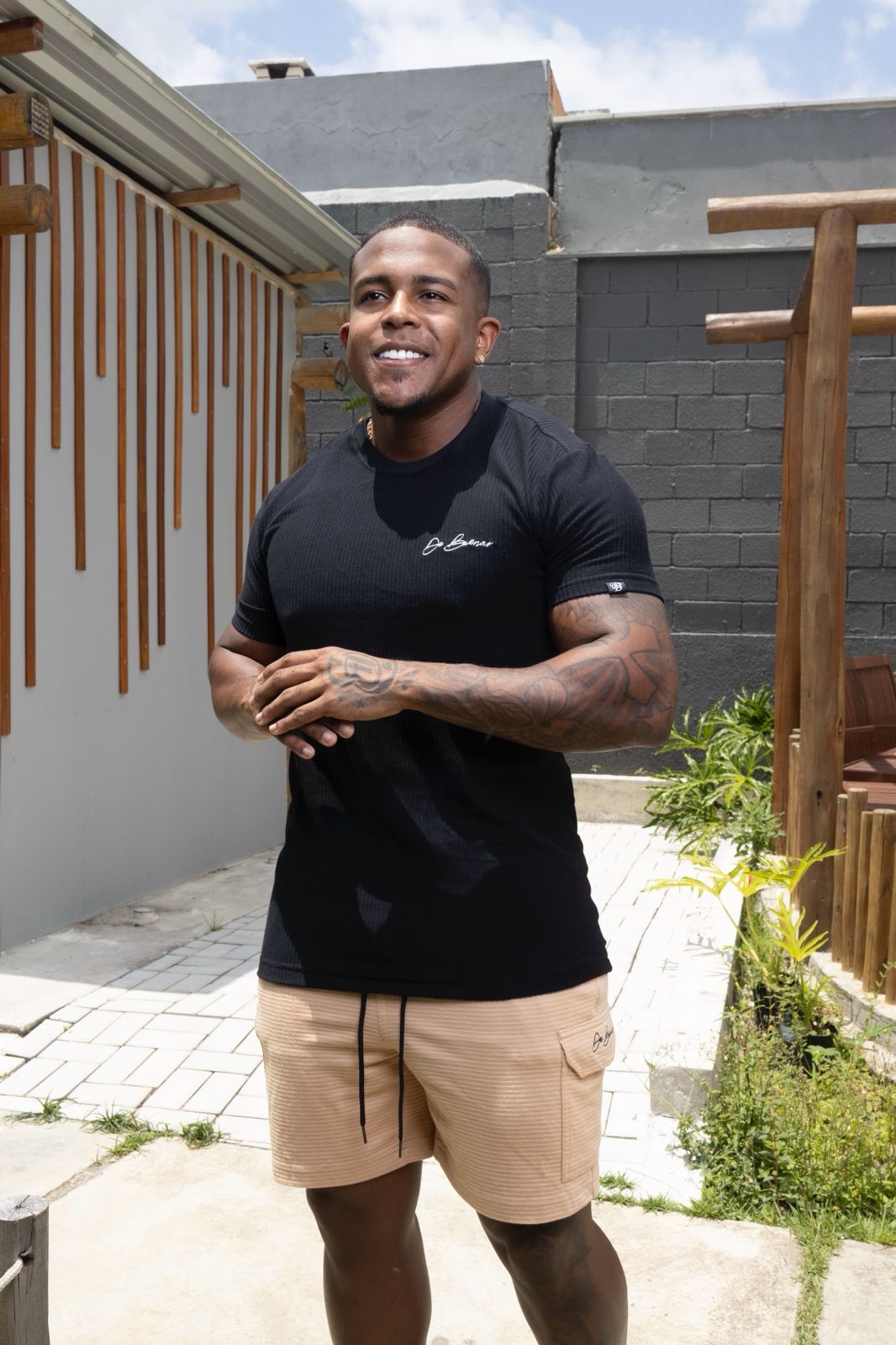 Camisa Preta Canelada Escrita De Buenas