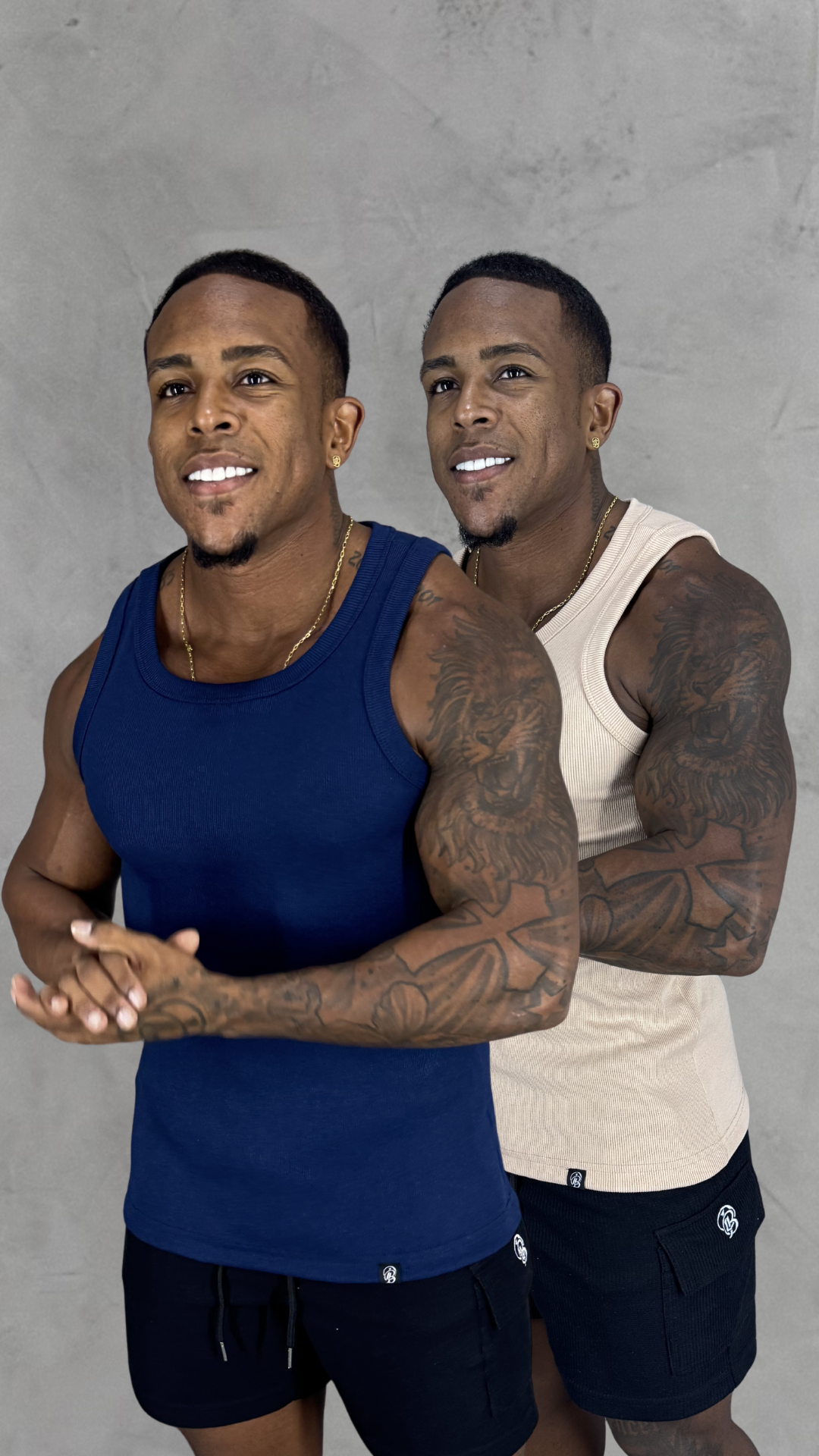 - Possui 1,72 de altura, com 85kg de peso corporal. Veste Tamanho M, as Peças no corpo ficam com ajuste caimento slim!