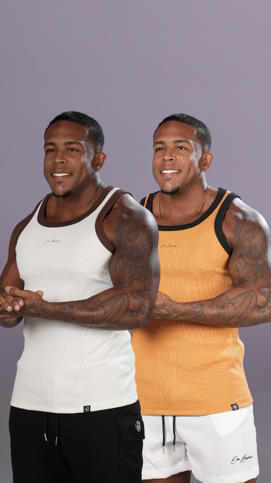Kit 2 Regatas Americanas Punho Exclusivo Bordado De Buenas Mostarda + Off-White