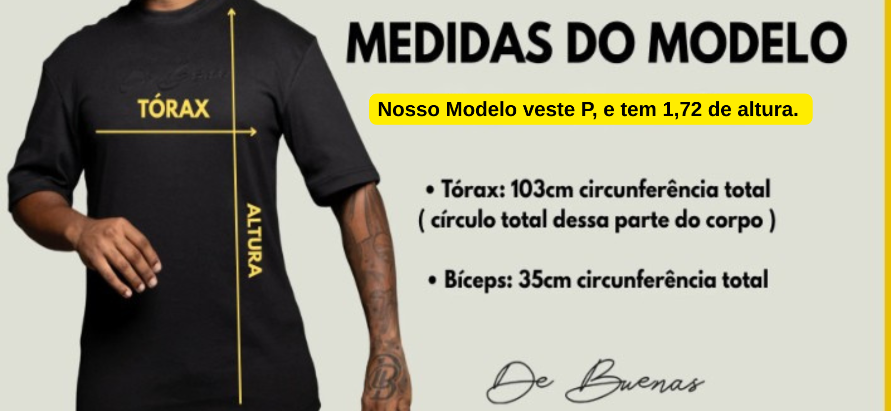 Agora que você já sabe todos os detalhes, não perca tempo, escolha o melhor tamanho e sinta a sensação de ser único e seja exclusivo com os produtos De Buenas.